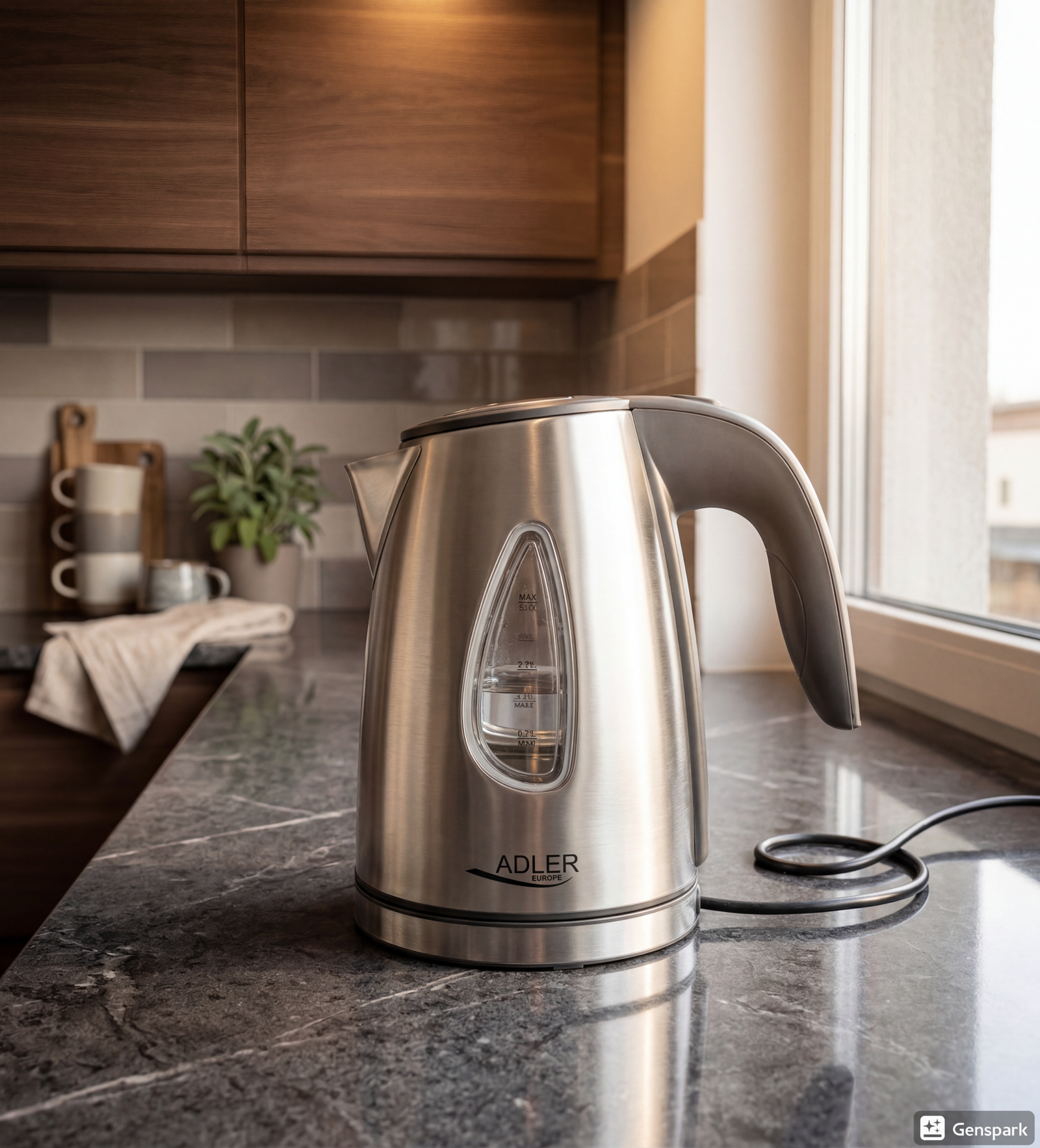 This stainless steel kettle combines durability with style. Its 360° swivel base and cordless design allow easy handling and perfect placement, making it a practical addition to your kitchen. A handy water level indicator ensures accurate filling, while the anti-scale filter guarantees clean and efficient boiling for all your beverages.