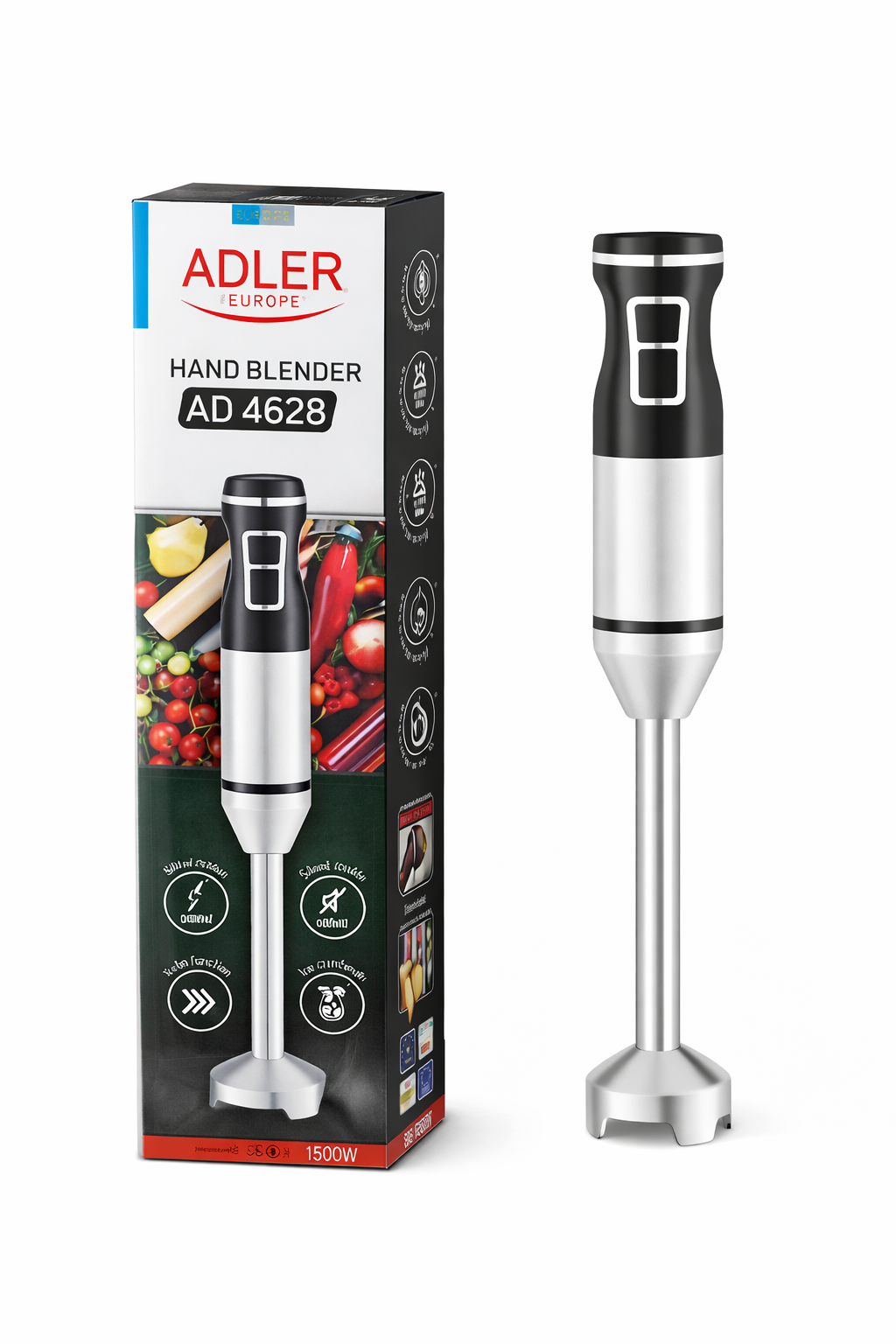 Adler AD 4628 Heavy-Duty Hand Blender – 1500W High-Power Immersion Blender with Stainless Steel Blades, Turbo Function, and Ergonomic Grip