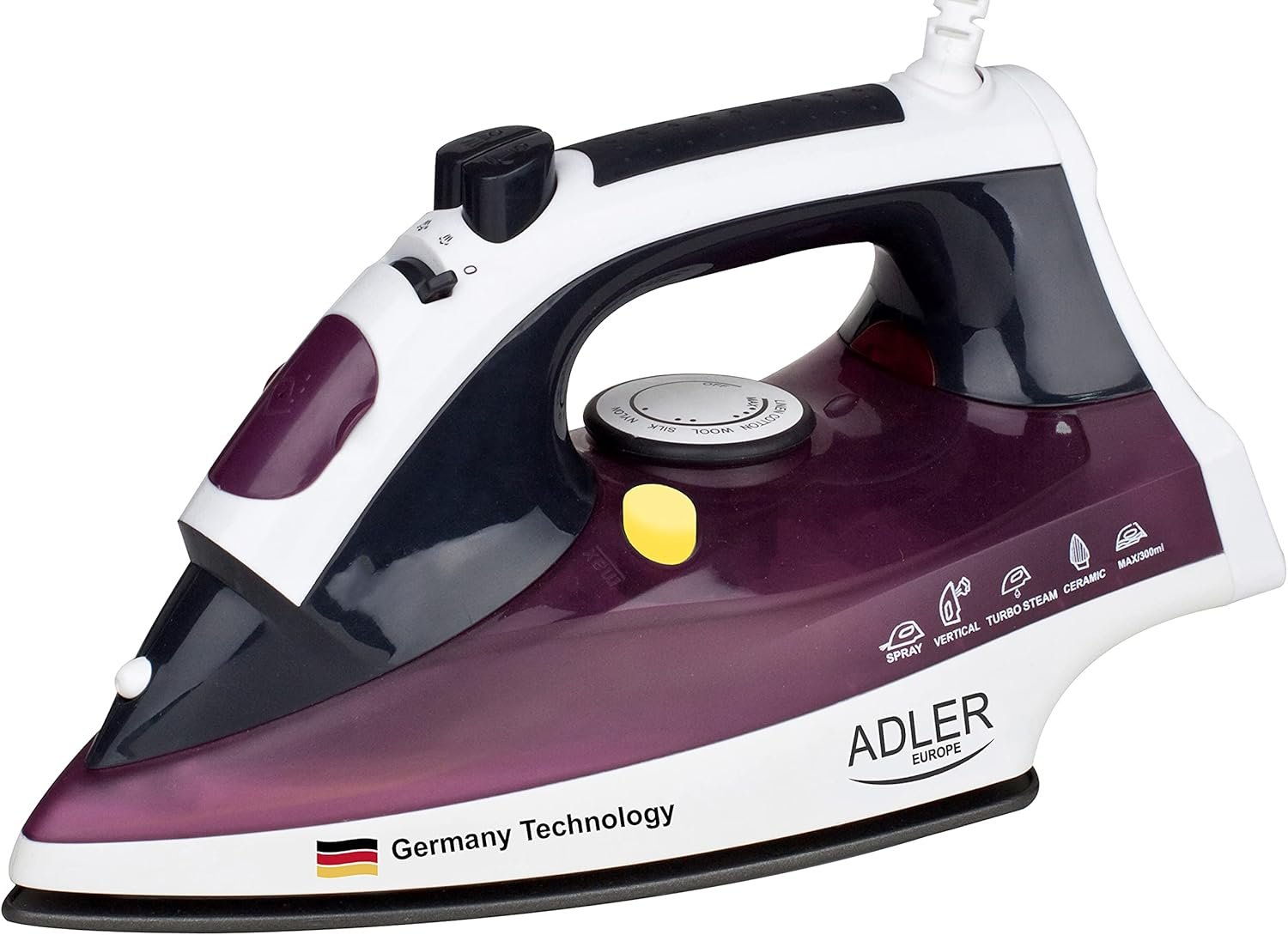 ADLER AD 5022 Steam Iron 3000W – Stainless Steel Soleplate, Vertical Steam, Anti-Calc System
