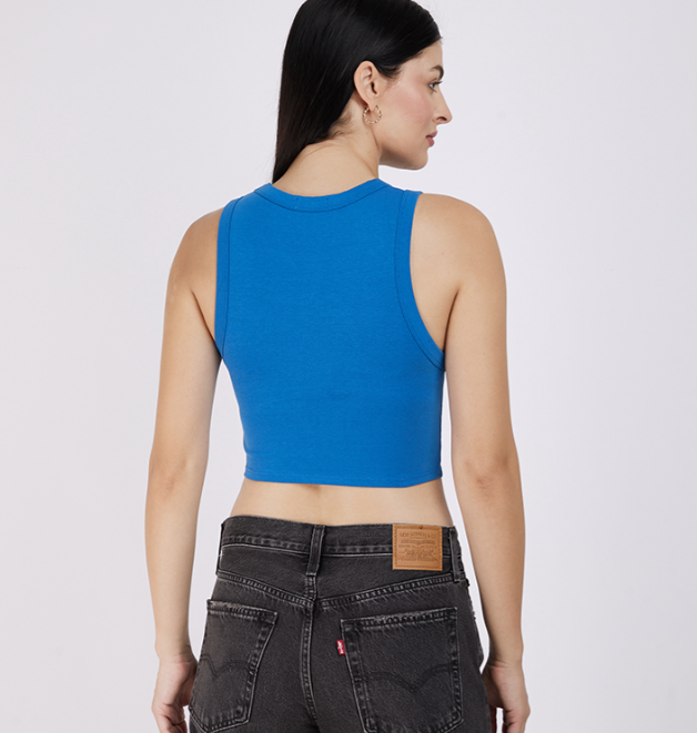 Ardene Women’s New York Graphic Ribbed Sleeveless Crop Tank Top – Royal Blue
