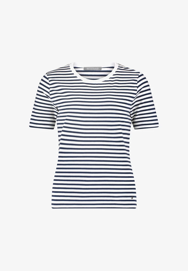 BETTY & CO Classic Breton Stripe T-Shirt – Short Sleeve Crew Neck – Navy/White – Size L