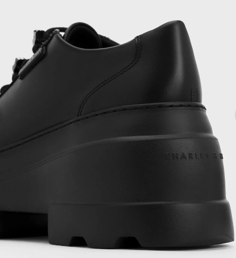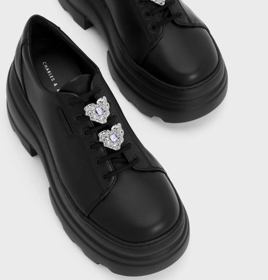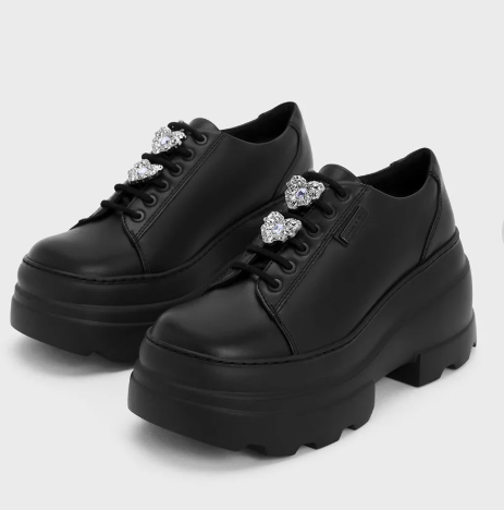 Charles & Keith Black Chunky Platform Shoes with Crystal Embellishments – Size 37