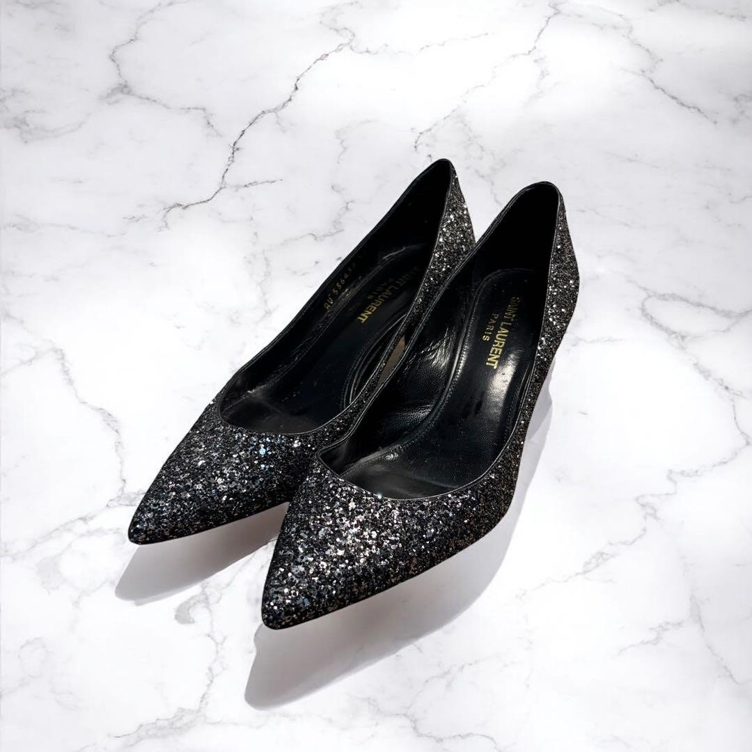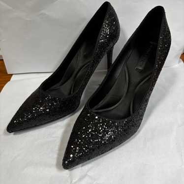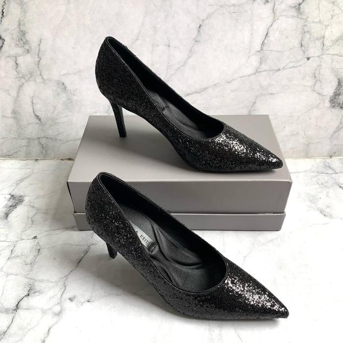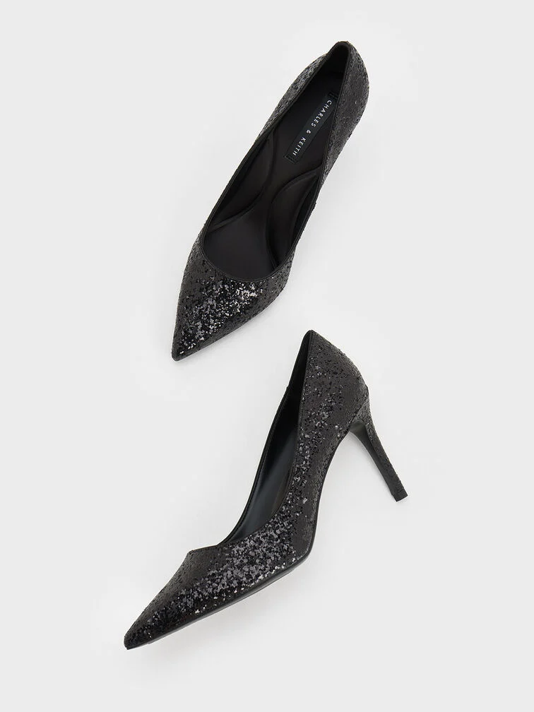 CHARLES & KEITH Black Glitter Pointed-Toe Stiletto Pumps | Party Heels