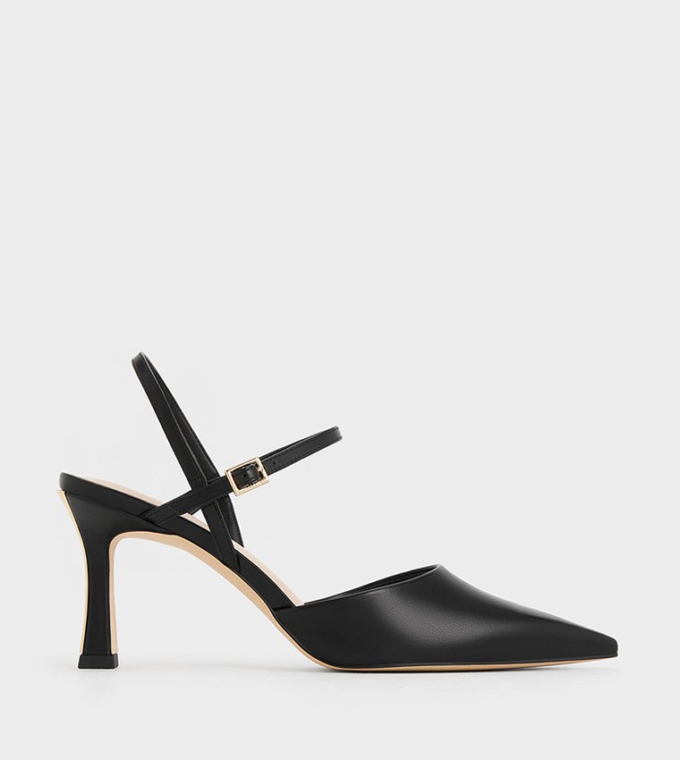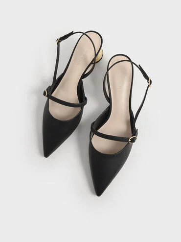 Charles & Keith Black Pointed-Toe Slingback Heels