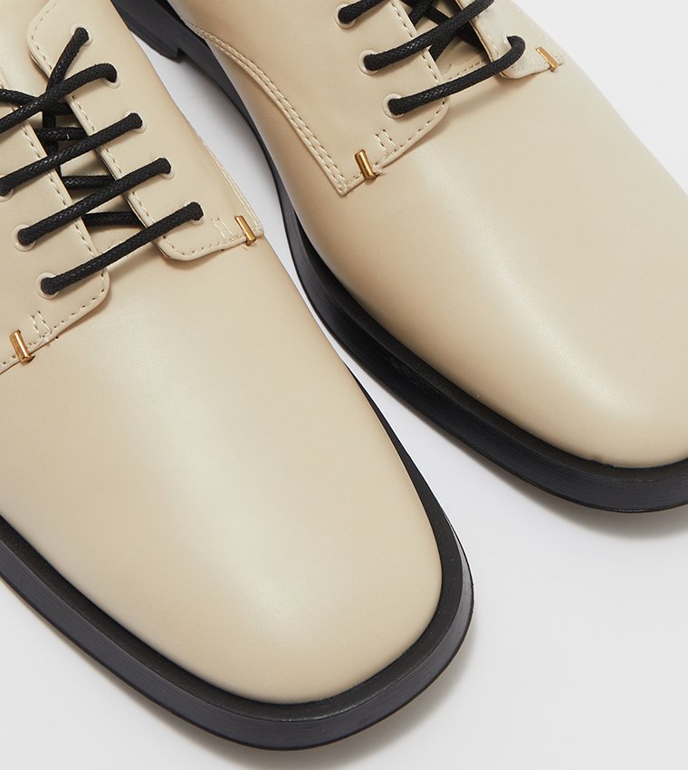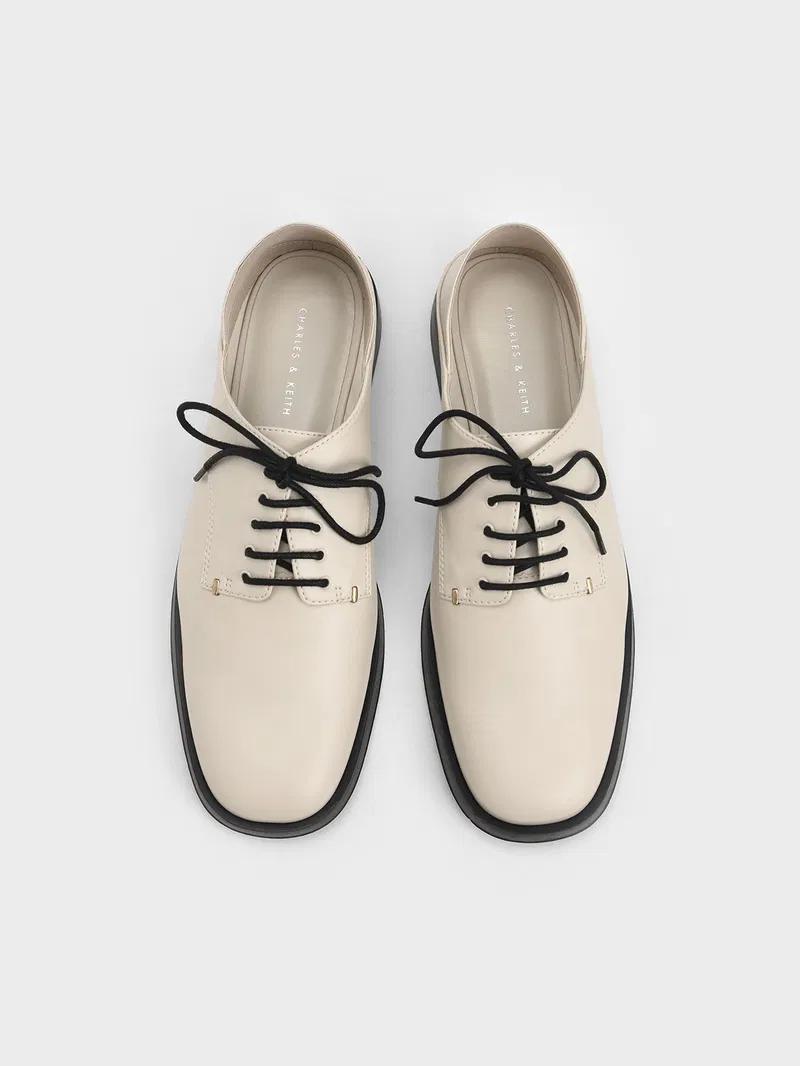 Charles & Keith Cream Faux Leather Square-Toe Lace-Up Mules