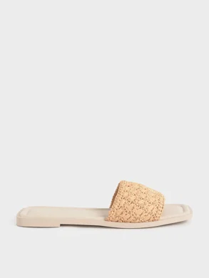Charles & Keith Woven Square-Toe Slide Sandals – Nude/Beige