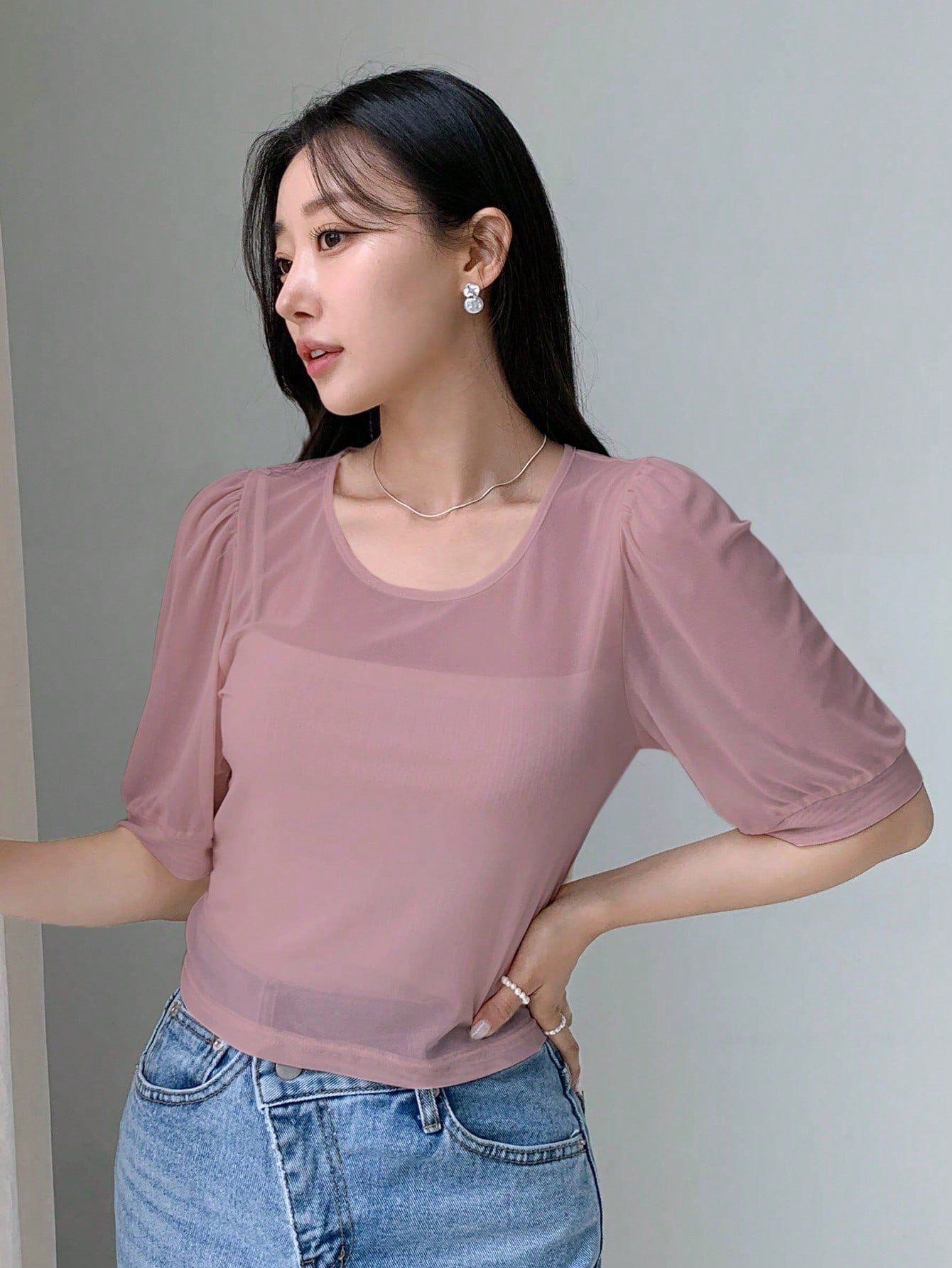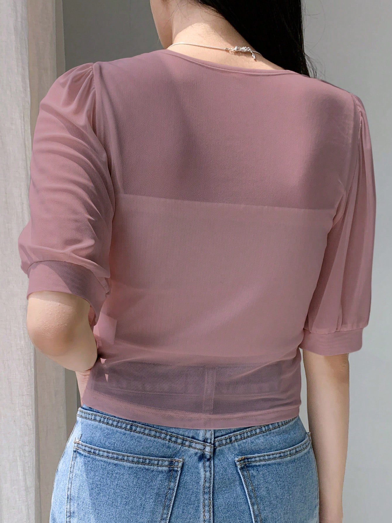 Add a soft, feminine touch to your outfit with the exquisite Sheer Puff Sleeve Blouse by DAZY. This blouse is not just a garment; it’s a statement piece that promises to elevate your style with its charming light mauve shade. Whether you’re attending a brunch, heading to the office, or enjoying a day out, this blouse is the perfect choice to showcase your graceful side.