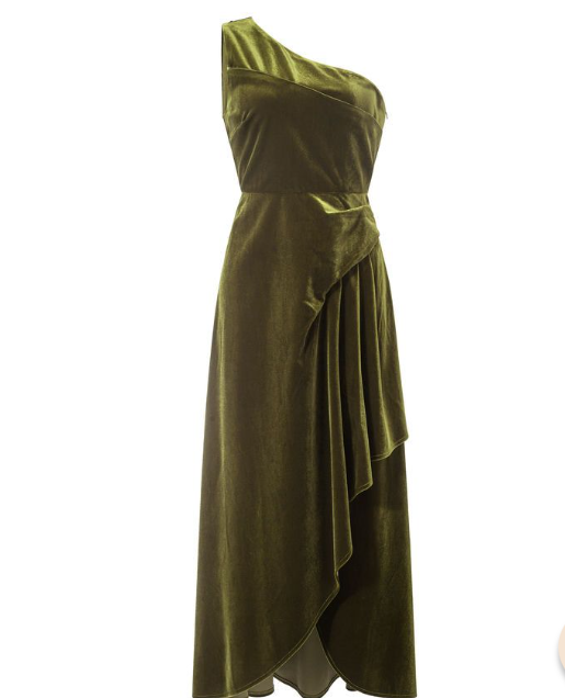 Step into the spotlight with the Femi9 one-shoulder midi dress, a masterpiece of elegance and craftsmanship. Designed to turn heads, this dress captures the perfect balance of sophistication and modern style. The soft olive green velvet fabric exudes luxury, making it an impeccable choice for anyone seeking to stand out at weddings, formal gatherings, or black-tie events. With its stunning one-shoulder design and chic draped bodice, the dress accentuates your natural allure, ensuring you leave an unforgettable impression everywhere you go.