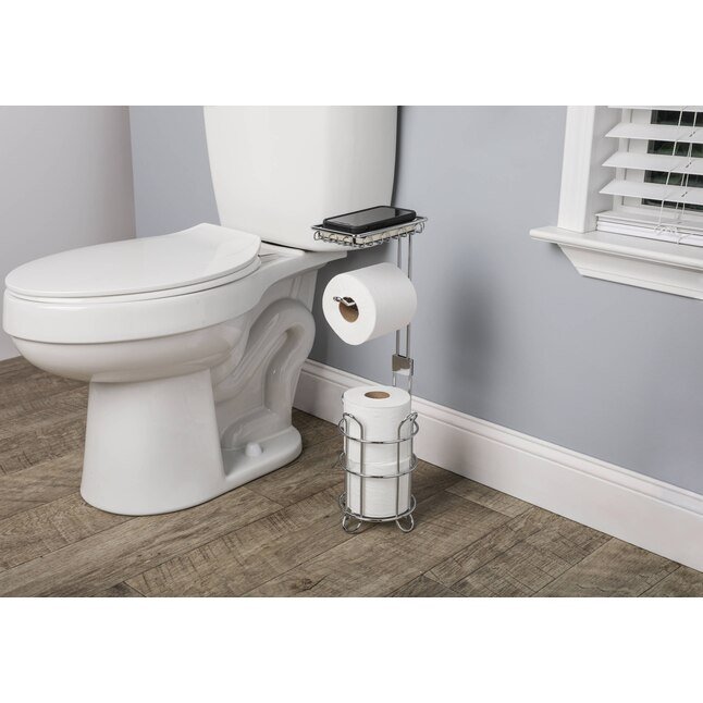 Maximize your bathroom space effortlessly with this sleek, free-standing toilet paper dispenser. Designed for compact organization, this essential piece combines elegant style with practical features to enhance the usability of your bathroom while adding a modern touch. Its chrome finish seamlessly integrates with any bathroom décor, ensuring a polished and sophisticated look for your space.