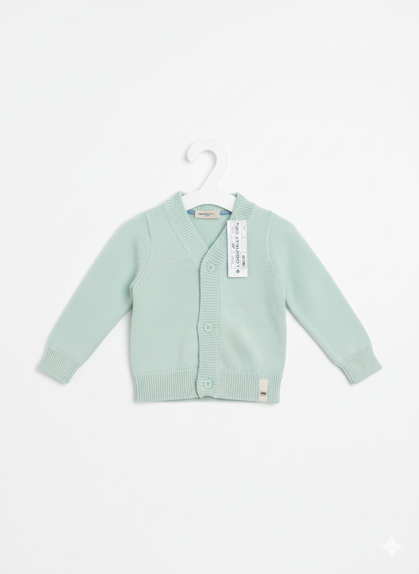 Discover the charm and comfort of our mint green V-neck knit cardigan, thoughtfully designed for infants and toddlers. This adorable layering piece combines style and functionality, making it the perfect choice for keeping your little one cozy all year long. Whether you’re looking for warmth during cooler months or a lightweight layer during spring and autumn, this cardigan seamlessly blends into any baby’s wardrobe.