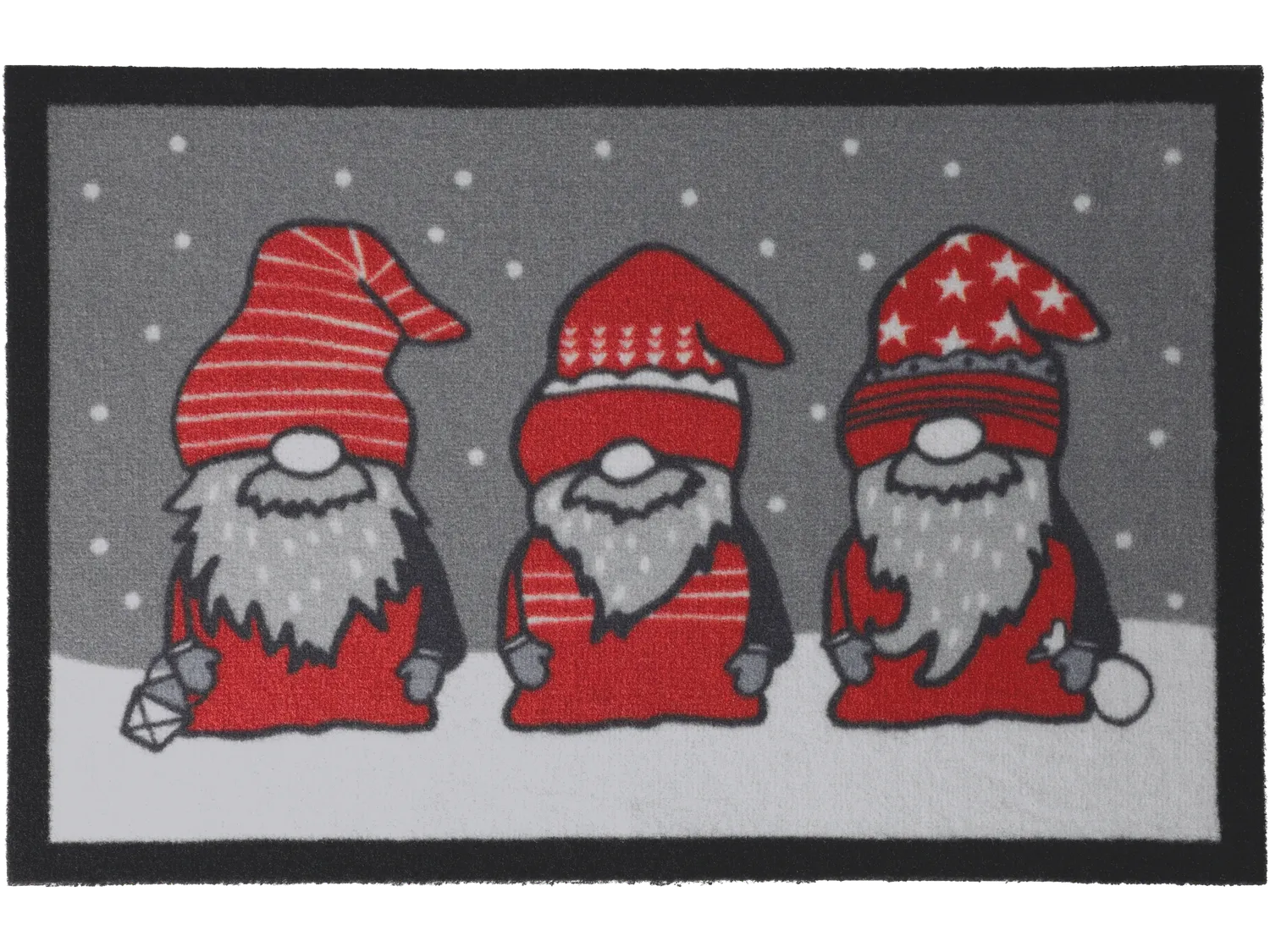 Transform your entrance into a cozy winter wonderland with the LIVARNO doormat (40x60cm). Designed to welcome guests with warmth and charm, this durable doormat features a delightful trio of grey-bearded gnomes dressed in iconic red and white winter hats, set against a snowy grey background. Perfect for the holiday season, it offers the perfect blend of functionality and festive appeal.