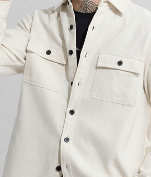 Perfect for casual and street-style outfits, the men’s off-white twill overshirt allows you to stay on-trend without sacrificing practicality. Pair it with jeans, chinos, or joggers, and make every outfit effortlessly stylish.