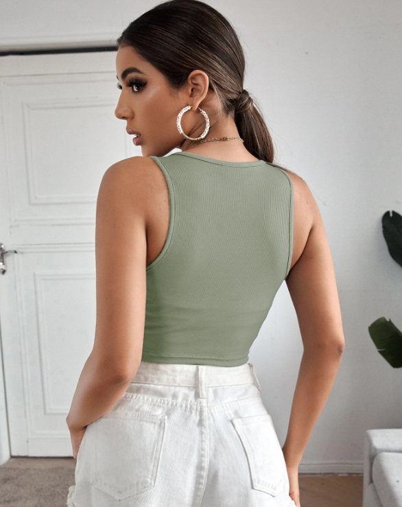 Made from soft, stretchy ribbed fabric, this crop top ensures a flattering, body-hugging fit that moves with you. The breathable material is perfect for all-day wear, whether you’re staying active or relaxing in style.