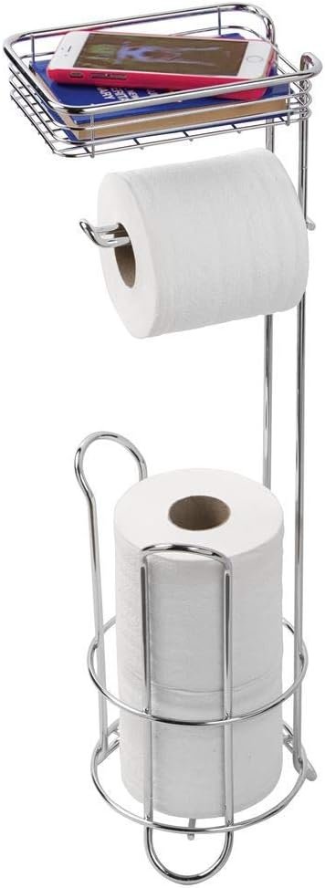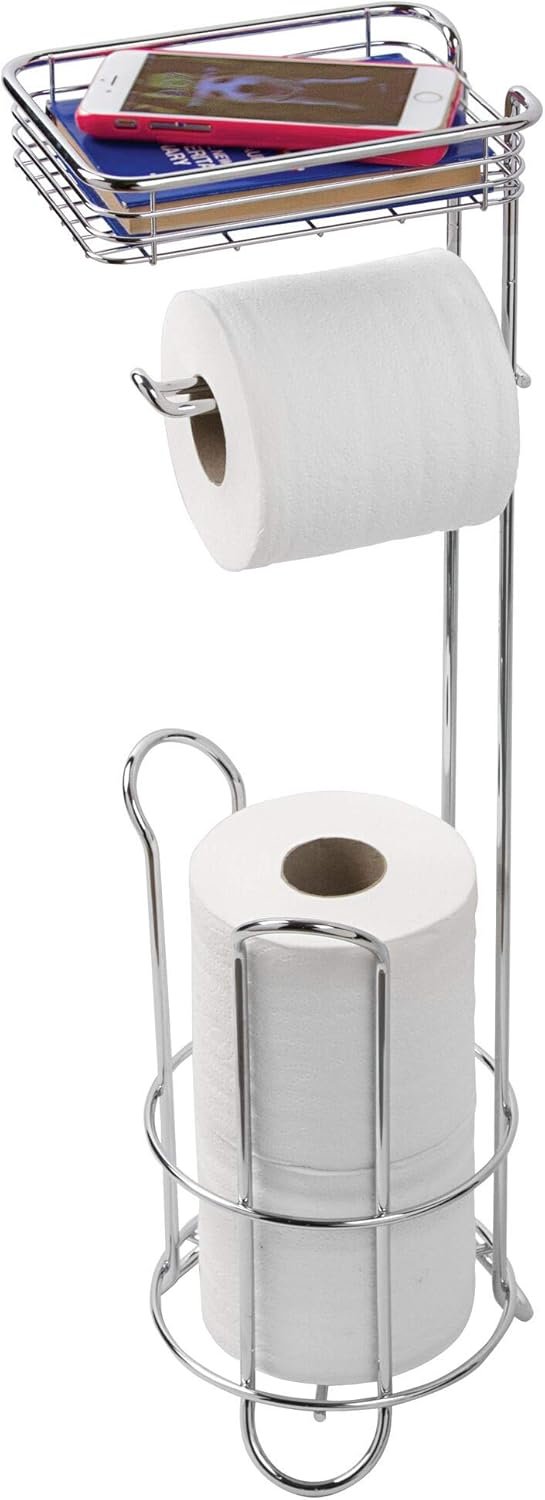 Style Selections Freestanding Toilet Paper Holder with Phone Shelf and Reserve Storage, Chrome Finish