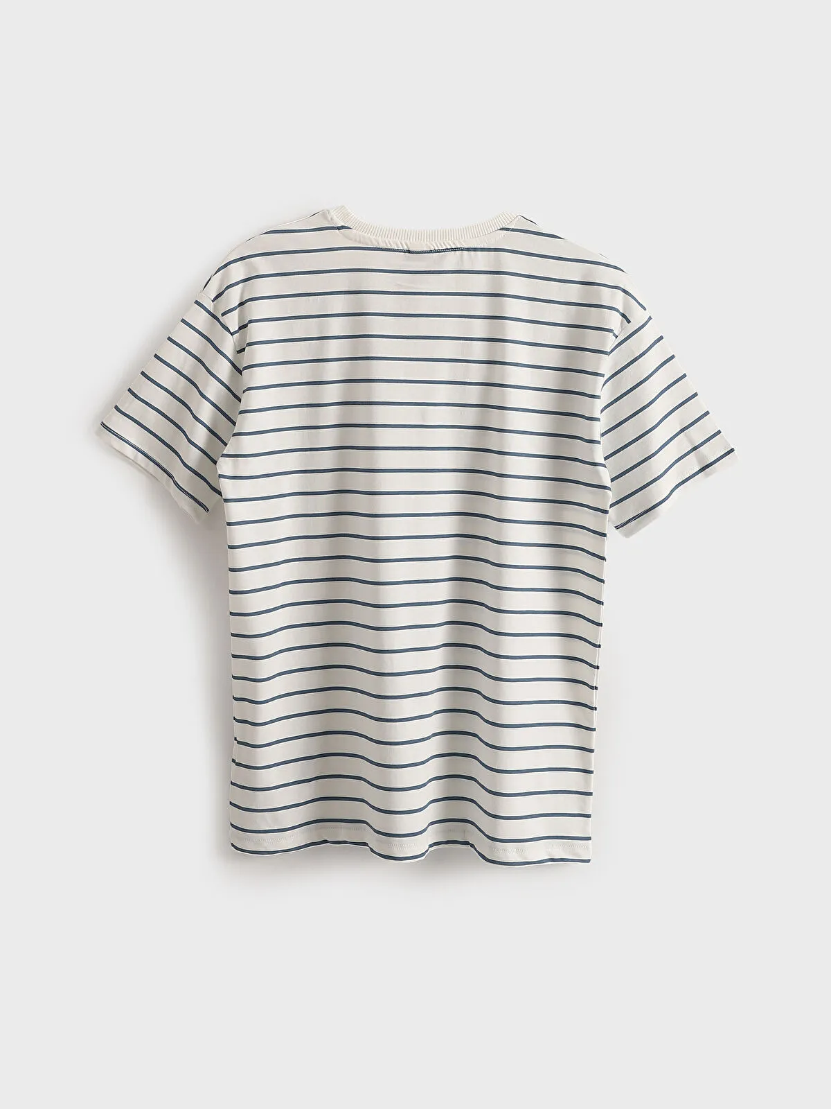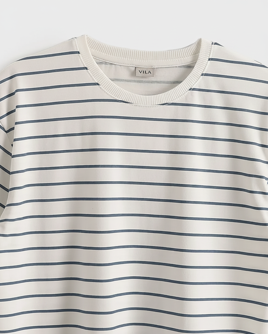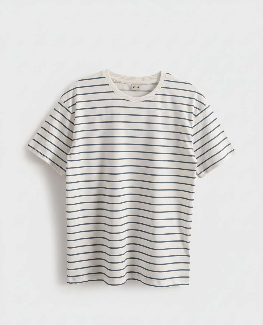 Vila Striped Relaxed Fit T-Shirt for Women (Off-White/Navy)