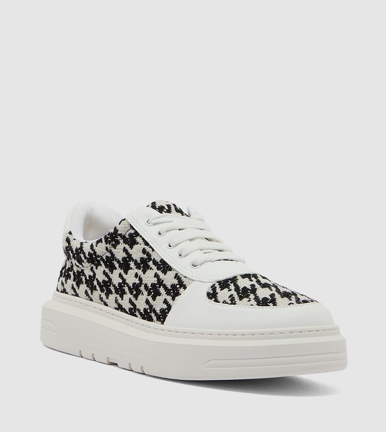 Step confidently into style and comfort with these versatile houndstooth sneakers. Ready to turn heads and keep your feet happy? Add these must-have sneakers to your wardrobe today!