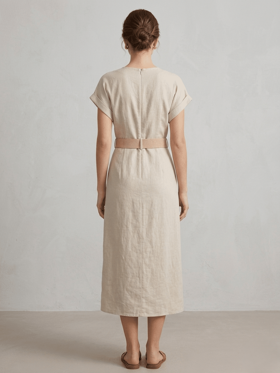 Perfect for elevated weekend brunches, outdoor events, or casual gatherings, this linen-blend midi dress adds a refined charm to your wardrobe. Make every moment count with a piece that celebrates both practicality and elegance.