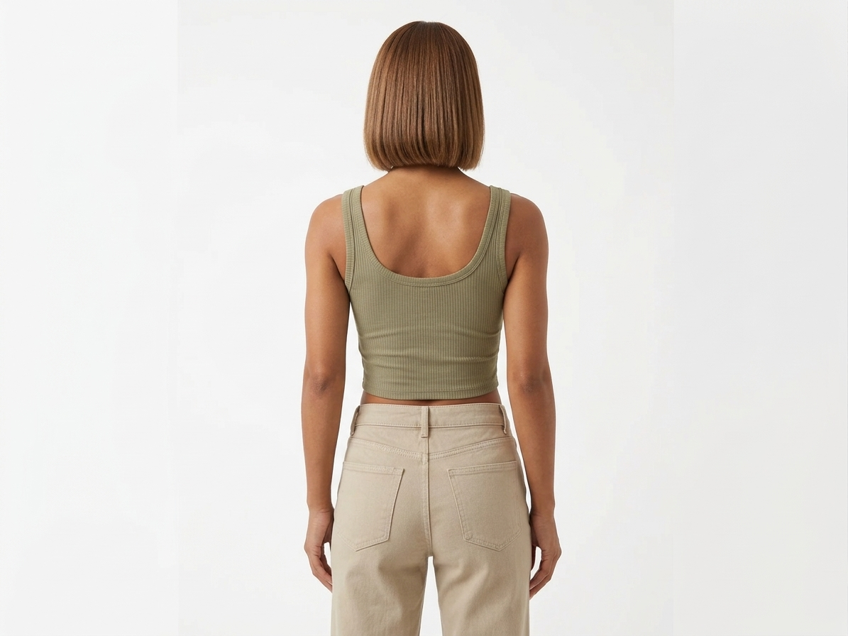 Crafted from soft and durable ribbed fabric, this crop tank offers a slim yet comfortable fit. The stretchy material ensures easy movement, making it perfect for both relaxed days and active outings.