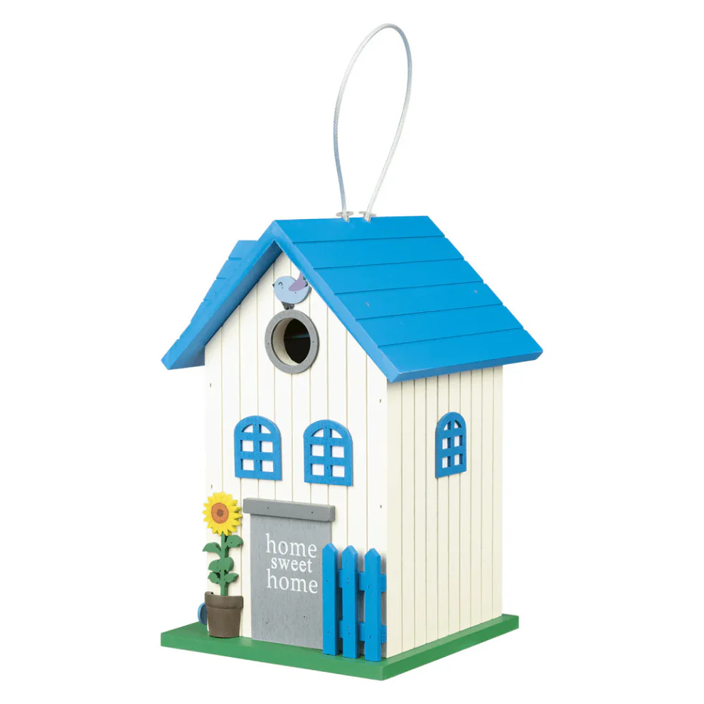The Zoofari birdhouse is more than just a functional nesting spot; it’s a beautifully crafted piece of garden decor that invites the enchanting presence of native European songbirds to your outdoor space. With its charming blue-slated roof and decorative “Home Sweet Home” sign, this birdhouse seamlessly blends style and utility, making it a delightful addition to any garden, patio, or balcony.
